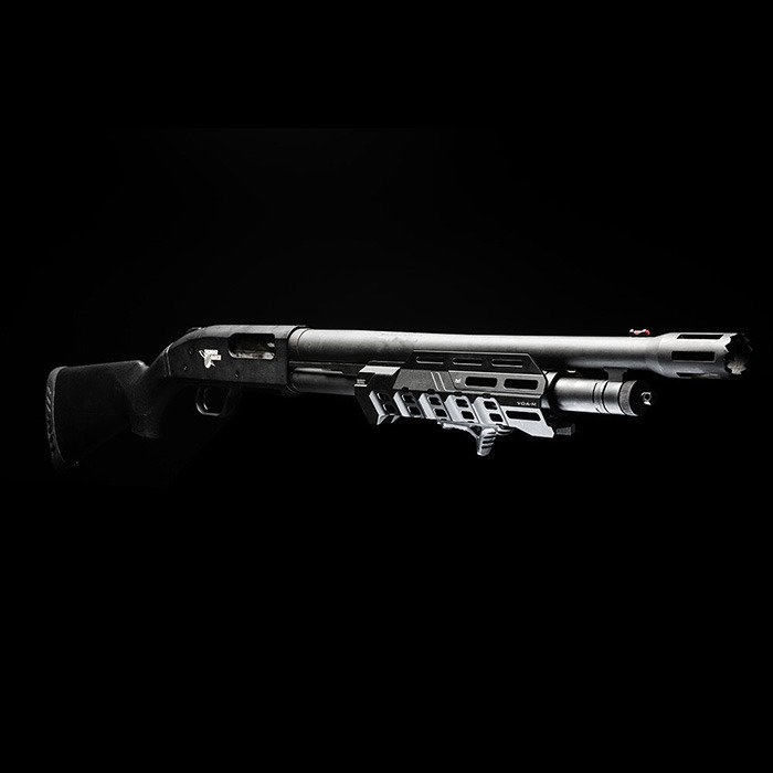 - Ergonomischer Aluminium-Handschutz VOA für Mossberg® 590 Schrotflinten. 10 M-LOK-Steckplätze für maximale Anpassung.