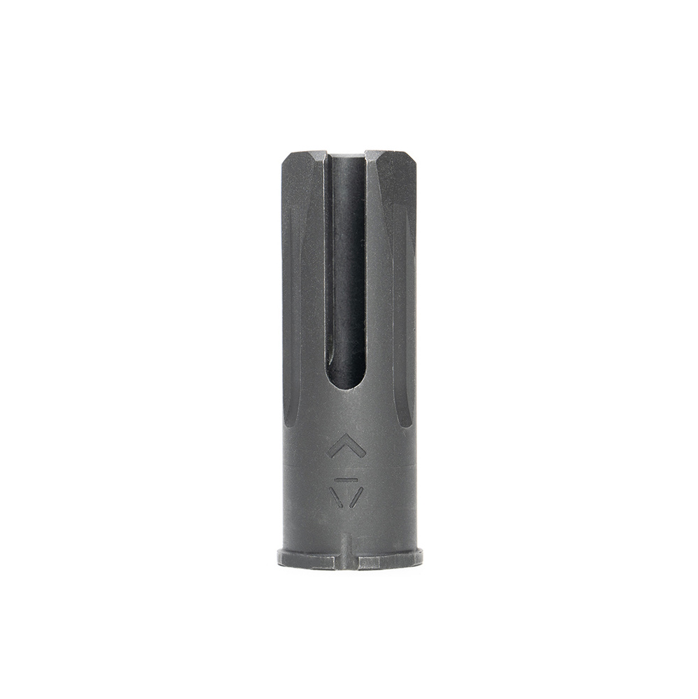Der AK Widow Mündungsfeuerdämpfer ist kompatibel mit AK-Systemgewehren mit M14x1 LH-Gewinde. Das dreizackige Design mit einer asymmetrischen Zahnanordnung ermöglicht eine effektive Streuung der Entladungsflamme und die Ableitung der Gase von der Schussachse weg. Das Gerät erhöht nicht die Nebengeräusche, was ein wichtiger Aspekt beim Einsatz in Feuerteams oder auf dem Schießstand ist.