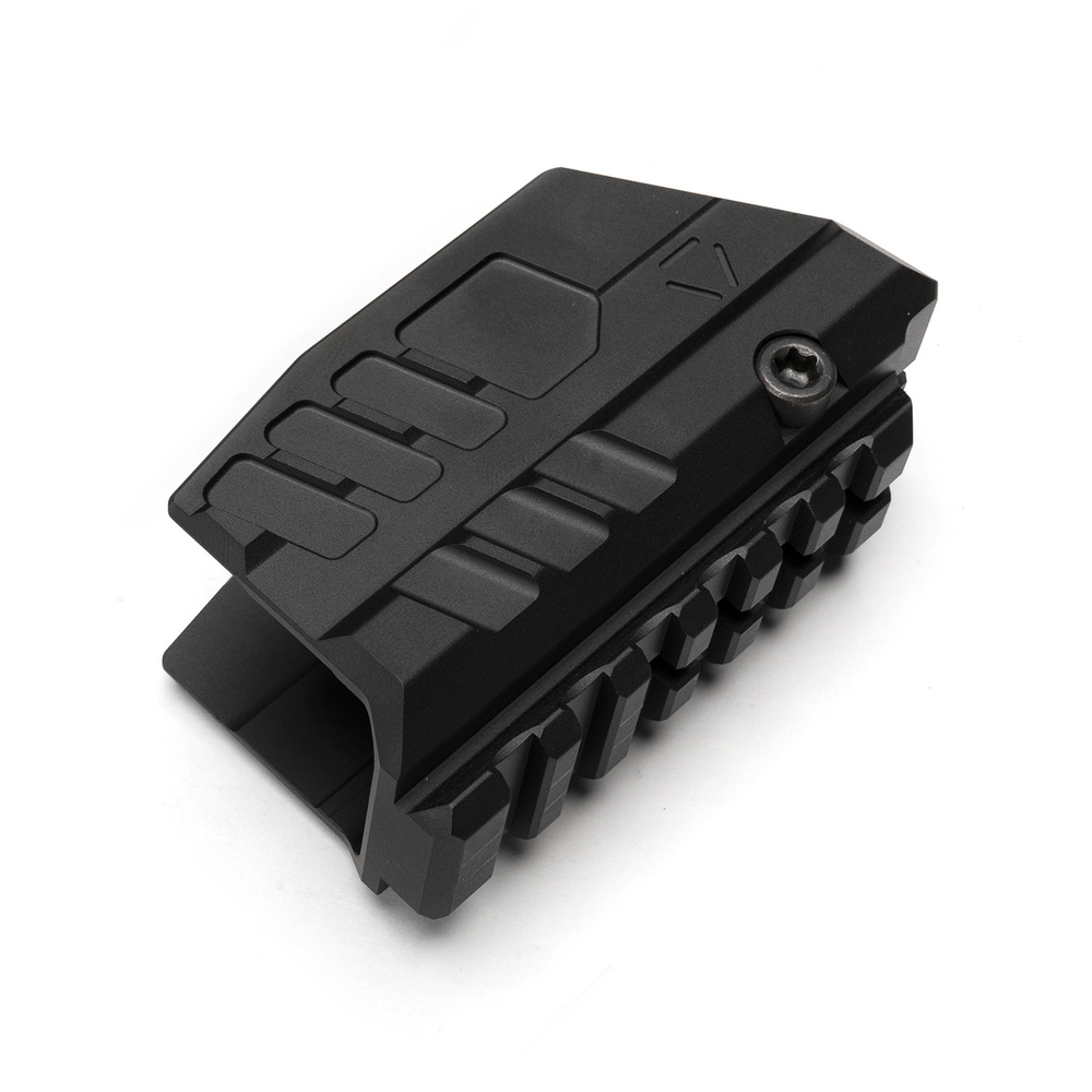 The SI-SMC-BS-S exhaust shield is designed for the SMC-Alpha and SMC-Bravo. Mounted on a Picatinny rail, the shield has a mounting rail of the same standard to allow the mounting of more accessories. It obscures the space in front of the thumb and discharges hot gases forward and upward, reducing discomfort and the risk of burns for the shooter.