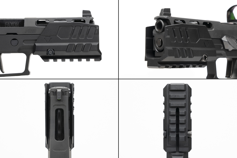 The shield is made of milled 6061-T6 aluminum, which quickly dissipates the adopted heat. The item fits not only SMC-Alpha/Bravo rails, but also most pistol frames with a maximum width of 27 mm and Picatinny rail.