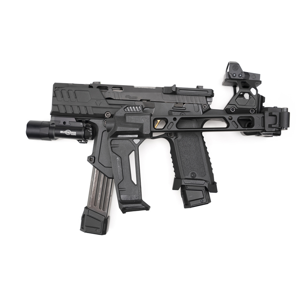 The Hyper blast shield is a component designed for use with SMC Alfa and Bravo skeeters. It reduces the impact of exhaust gases and increases the comfort of the small arms.
